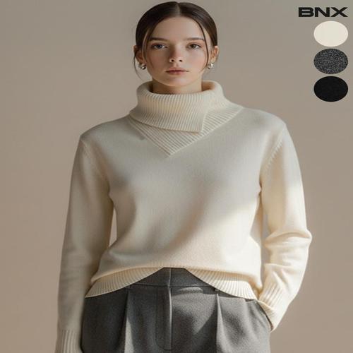 [비엔엑스]여성 소프트 크로스오버 터틀넥 니트