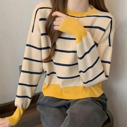 [엄지척]줄무늬 라운드넥 니트티 여성 FREE 캐주얼 가을 겨울_19659517_667501