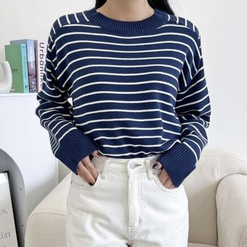 [엄지척]줄무늬 여성 니트 봄 가을 여자 스트라이프 니트티_19678445_667501