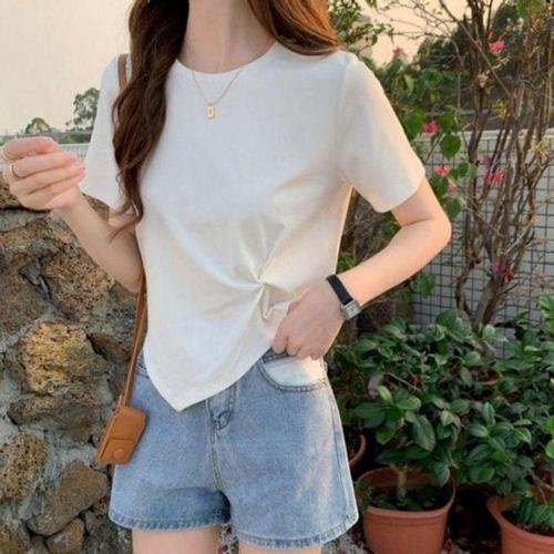 반팔티 여성면티 잔가라 라운드넥 우먼줄무늬 숏 WFLQCUG