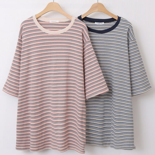 여성 루즈핏 스트라이프티 여성빅사이즈티 복고