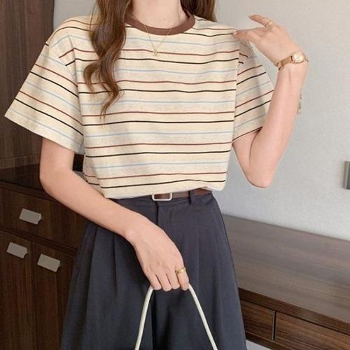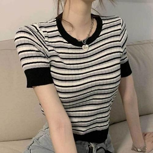[엄지척]여성 데일리 봄 여름 반팔티셔츠 니트티 스트라이프티_19678091_667501