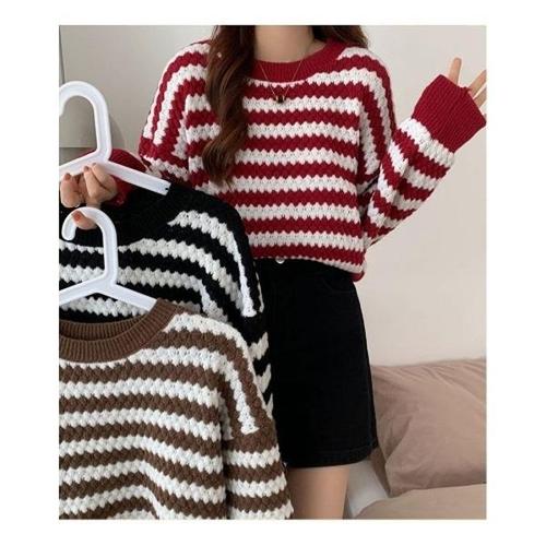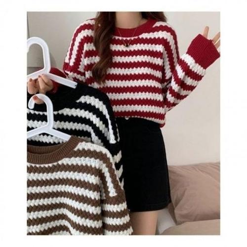 [엄지척]겨울 니트 캐주얼 니트티셔츠 줄무늬 라운드넥 니트티_19678726_667501