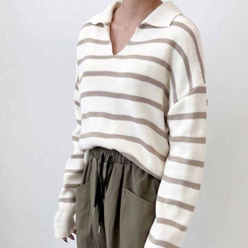 스트라이프니트 줄무늬니트 카라니트 니트티 여성 WFKOIZN