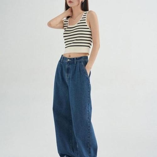 디자인 스트라이프티 하프 린넨 단가라 크롭나시 WFLQALU