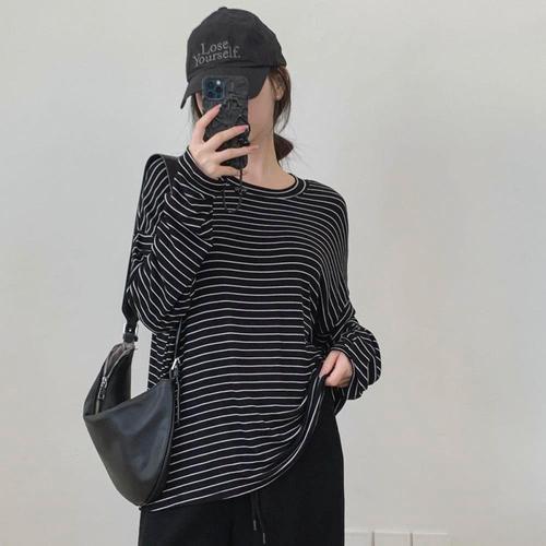 [셀러허브_여성트랜드패션]ONM 여자 2컬러 봄 가을 데일리 줄무늬 긴팔티 맨투