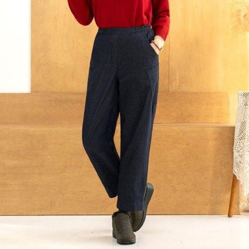 드리다 여성 겨울 직기 와이드 빅사이즈 기모 밴딩 슬랙스 팬츠 40-50대 미시 중년여성 엄마옷 하객 상견례