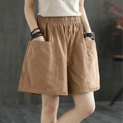 [셀러허브_여성트랜드패션]ONM 빅 포켓 와이드 면 반바지 여름 여성 여자 중년