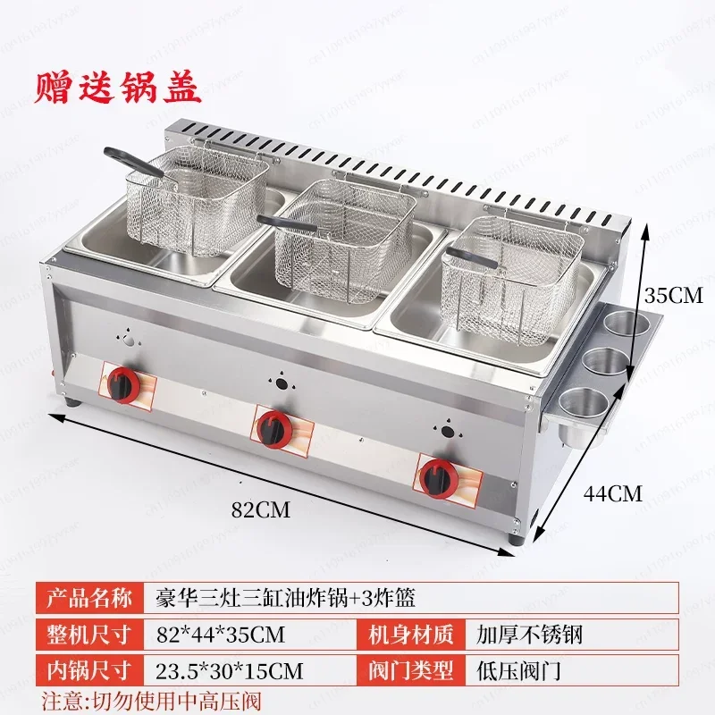 3기통 일체형 가스 프라이어, 고급 업그레이드, 감자튀김 및 치킨 커틀릿