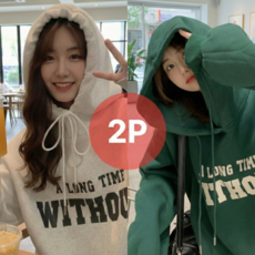 지디오 여성 후드 티셔츠 원사이즈 2개 세트 레터링 프린팅 맨투맨 긴팔 포켓 여자후드티