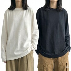 지디오 여성 긴팔 무지 간절기 티셔츠 2개 세트 루즈핏 라운드넥 심플 베이직 기본 사계절 긴팔티