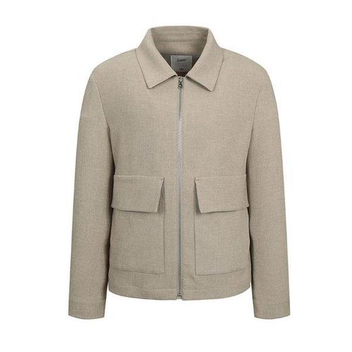 갤러리아_지이크 [S/S] 베이지 텍스처 플랩포켓 집업 간절기 점퍼 (PIMAD601