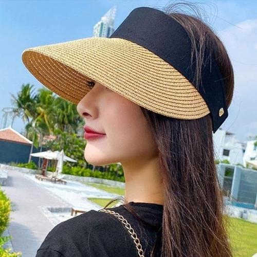여성 접이식 라탄 돌돌이 여름 바캉스 챙모자 컬러썬캡 휴가캡