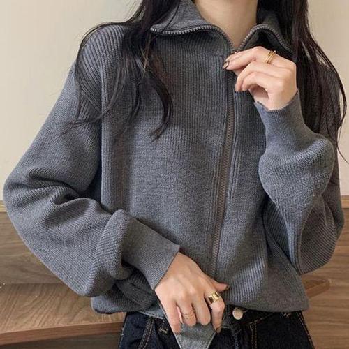 [에이치플러스몰]여자 카라 지퍼 가디건 청바지 패션 코디 크롭 니트