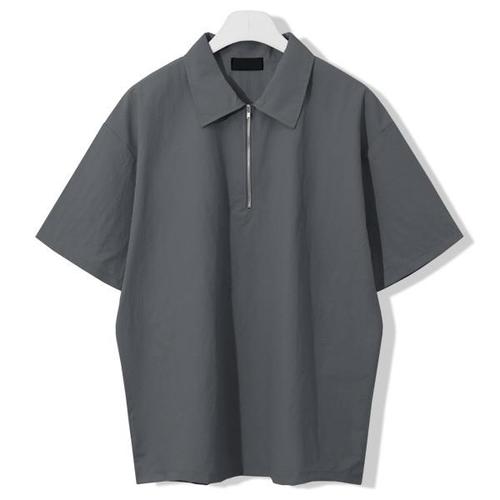 지퍼 감성 반팔티셔츠 긴팔 카라티셔츠 쿨 (3uE4g)