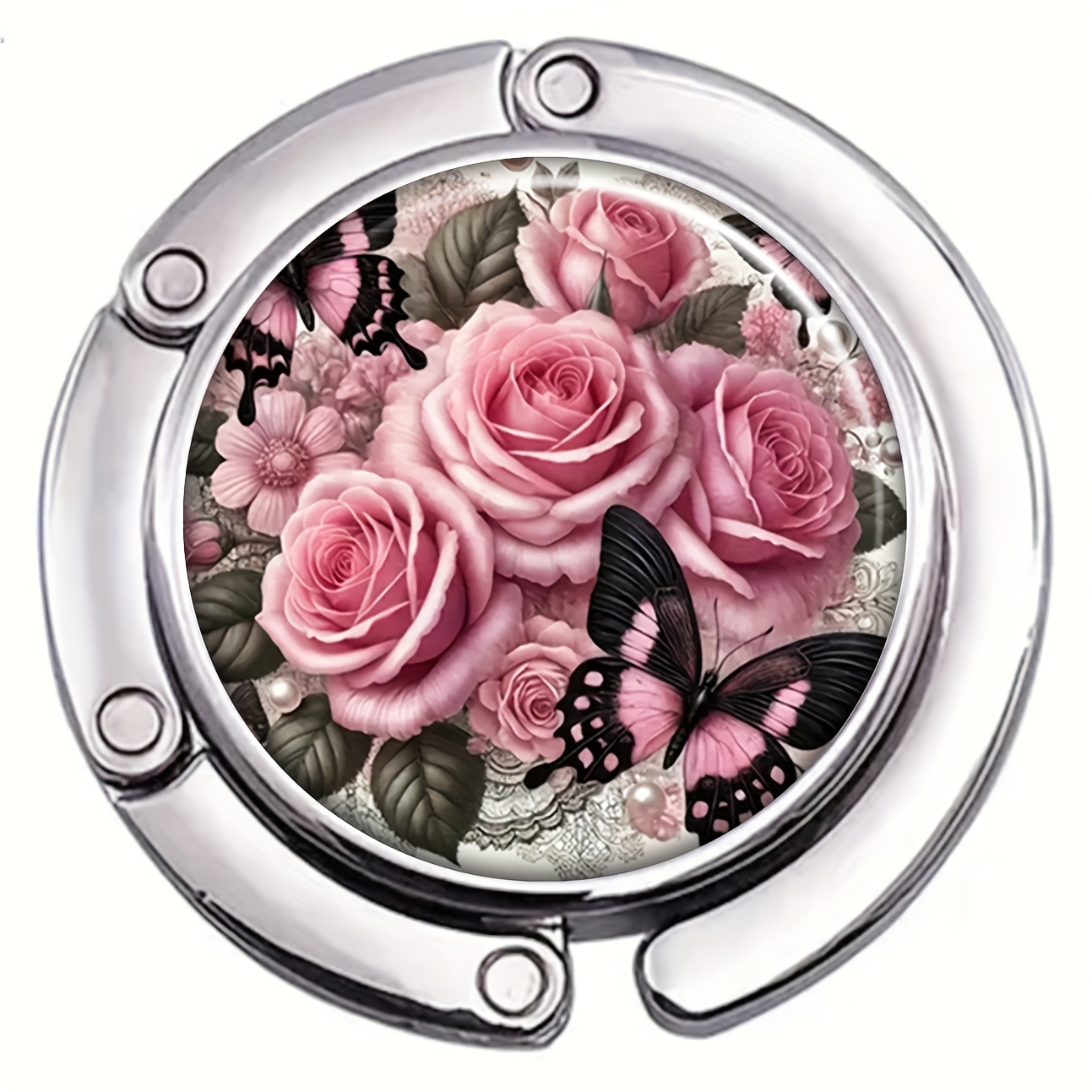 TEMU 여성용 빈티지 플로럴 백 행거 - 접이식 핸드백 후크 & 파우치 홀더, 우아한 핸드백 액세서리 (가방, 지갑, 핸드백용) - 스타일리시한 백 행거
