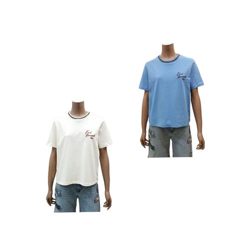 [지프]JQ3TSF255 아이보리 여성전용 넥 RIB 레터링 반팔티셔츠_S