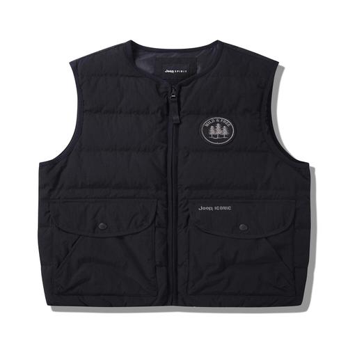 지프 배색 포켓 노카라 덕다운 베스트 JP4JPU621BK