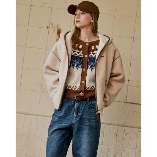 [지프]JQ4JPU261 다크베이지 우븐 블록 후디 뽀글이 집업 재킷