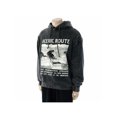 Jeep [남녀공용] R1012 오버핏 워싱 빅프린팅 후드티셔츠