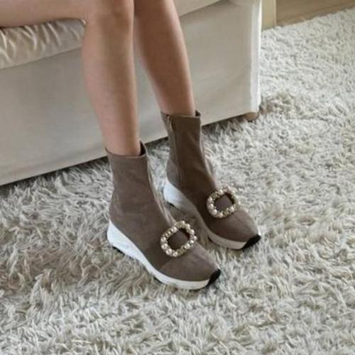 여성 세무 키높이 미들 장식 진주 부츠 운동화