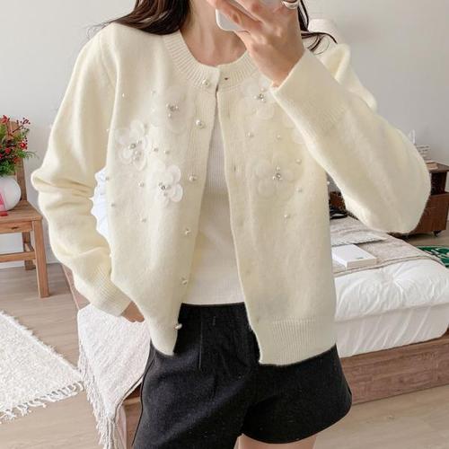 [미라클세븐][M7] 여자 큐빅 꽃무늬 진주단추 SS 부드러운 가디건
