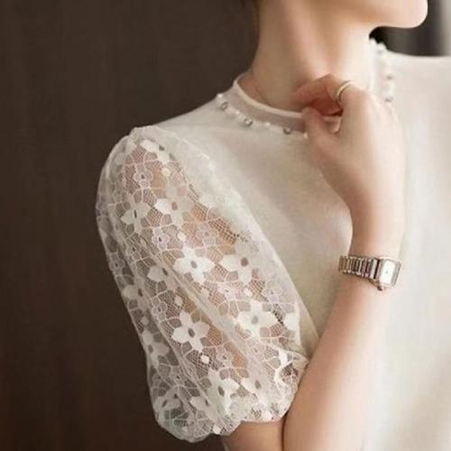 시크힐즈 여성용 넥라인 소매 진주포인트 니트 티셔츠 00938 T
