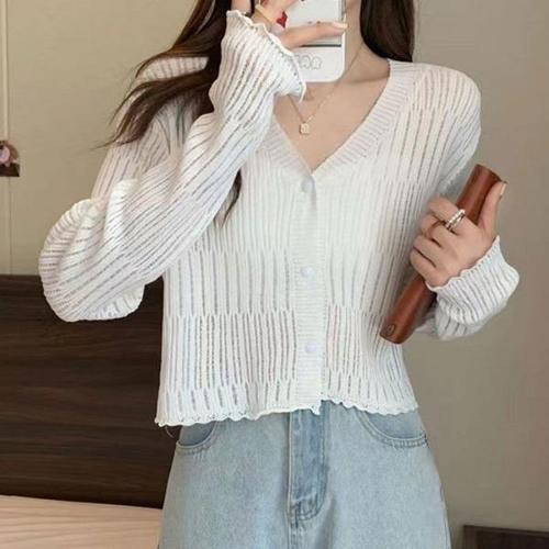 [엄지척]간절기 얇은 세로 패턴 진주 단추 크롭_19792370_667501