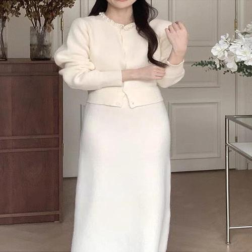 [귈림][귈림] 진주장식 티셔츠 가디건 +스커트 (GBWSE017P)