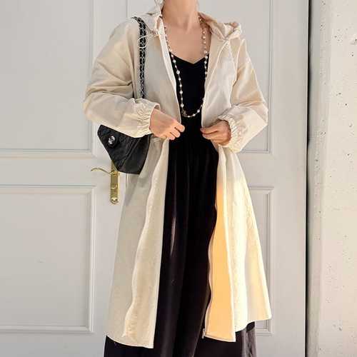 TIMEPURE 봄가을 여성 심플 오버핏 후드 긴팔 미디엄 기장 플리스 롱 후디 집업 롱 자켓 후드 롱 원피스