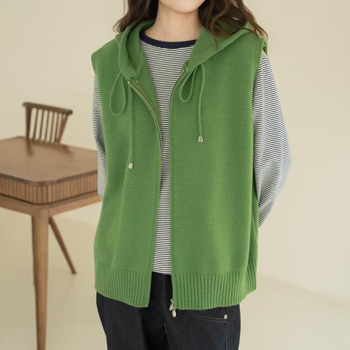 [옷자락] 여자 골지 후드집업 베이직핏 민소매 울소재 니트조끼