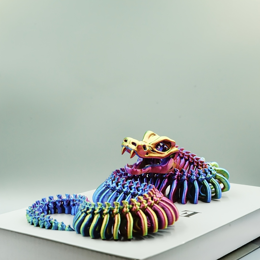 TEMU 3D 프린팅 고광택 뼈뱀 조각상 | 51.5cm 신비로운 뱀 조형물 | PLA 플라스틱 홈 데코, 레드-옐로우-블루/레드-골드 그라데이션 컬러