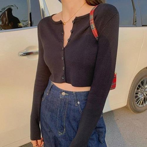 [신상오픈런]슬림핏 라운드넥가디건 쫀쫀 스판 데일리니트 세미크롭