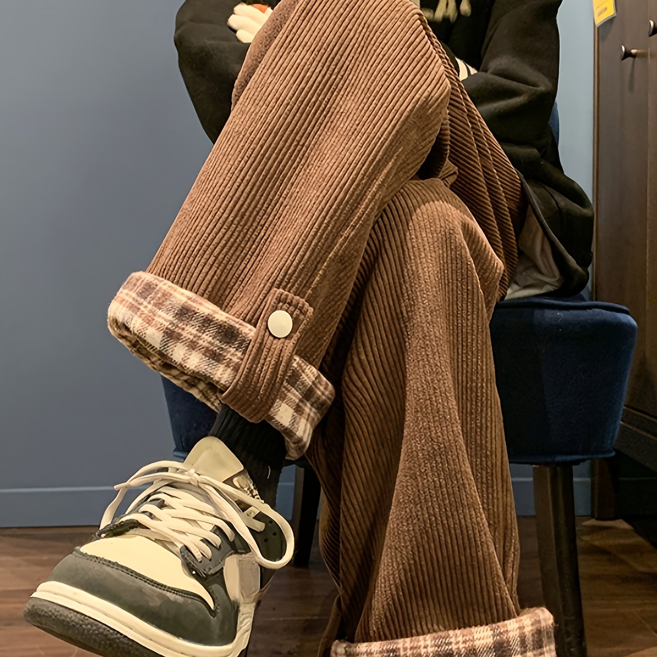 TEMU 여성용 코듀로이 팬츠 겨울용 따뜻한 스트레이트핏 바지 - 코듀로이 코듀로이(지퍼 없음) 클로저 - 중간 신축성 세탁기 사용 가능 캐주얼 팬츠, 가을/겨울 레이어링, 청바지 & 스웨터 코디 - 코듀로이 팬츠