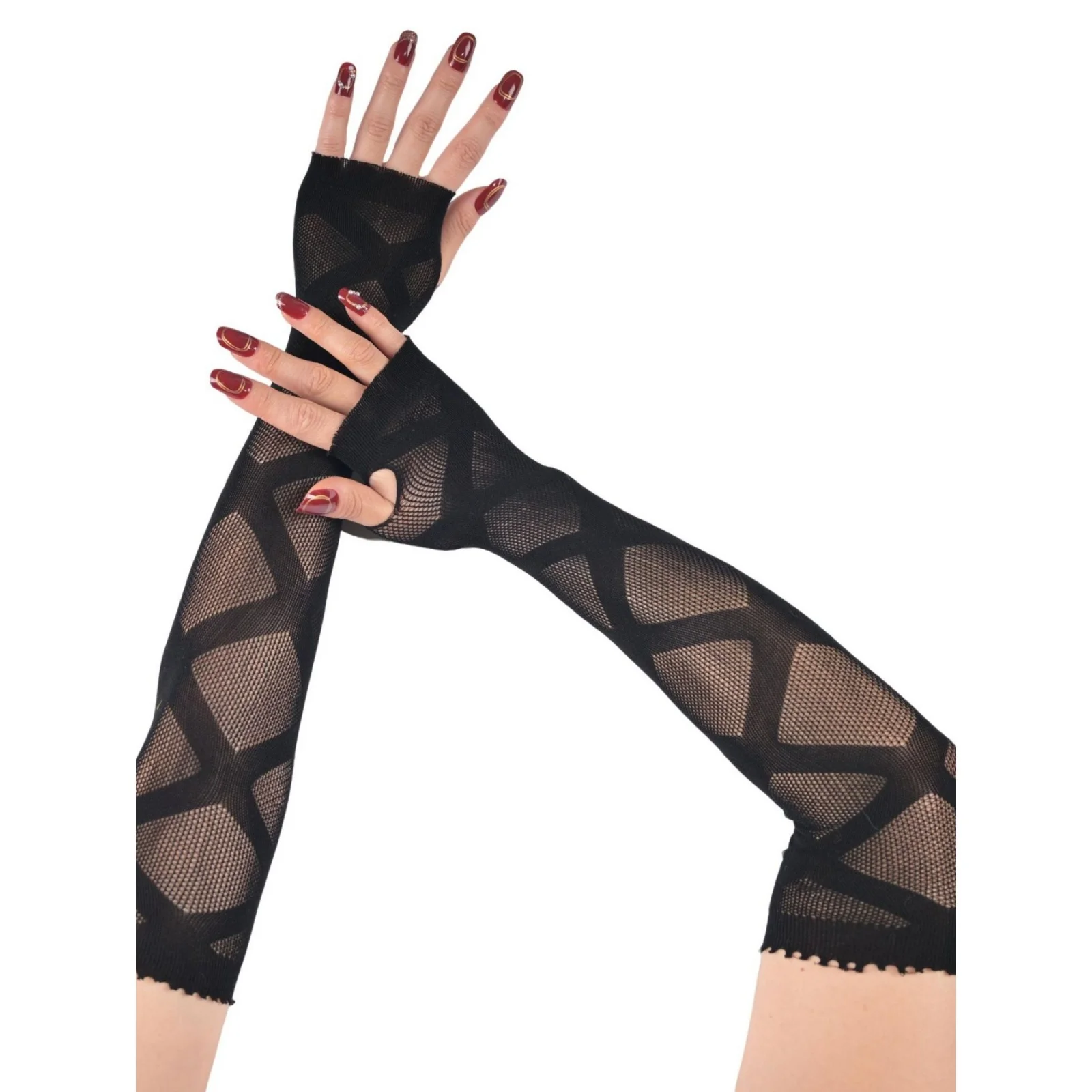 2PCS 다이아몬드 체크 중공 슬리브, 펑크 고딕 메쉬 긴 핑거리스 팔 슬리브