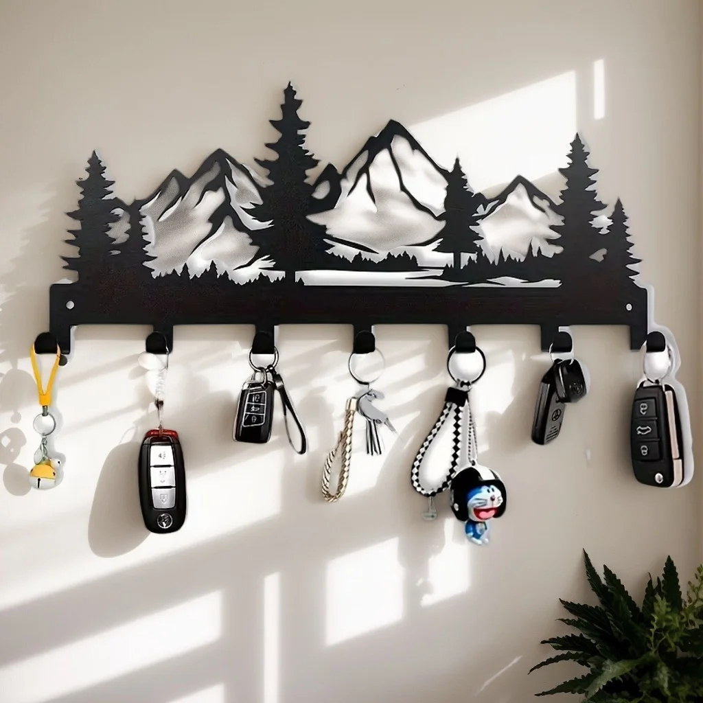 1개 간편 설치 벽걸이 금속 열쇠 걸이 - 수건, 모자 및 지갑을 위한 매력적인 숲 디자인 | 스타일리시한 입구 및 욕실 장식