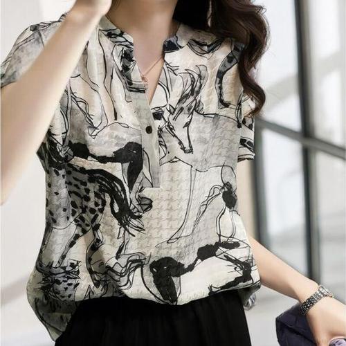 [셀럽하우스]여성 MPGP3974 여름 차이나 카라넥 반팔 셔츠형 블라우스