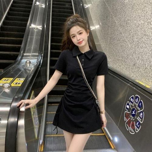 [셀럽하우스]얇은 JWUF8025 찰랑원피스 카라 냉장고 셔링 찰랑 스트링 골지