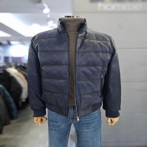 [바쏘]남자 네이비 천연 시어링 가죽 밍크에리 구스다운 점퍼 WSARZ4UB11A