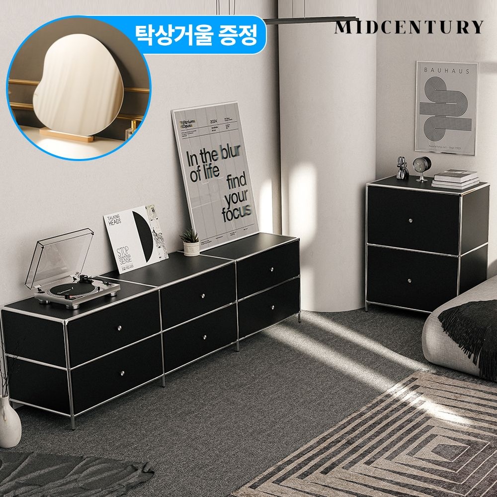 도로시 1200 모듈 거실장 낮은 티비다이 미드센츄리 수납 철제 서랍장 5colors