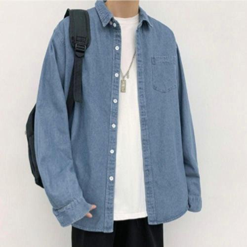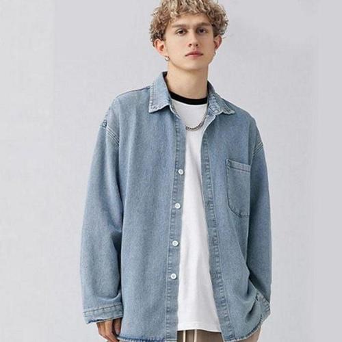 남방 청 댄디 셔츠 남자 캐주얼 데님 셔츠 오버핏 WFLOZVH