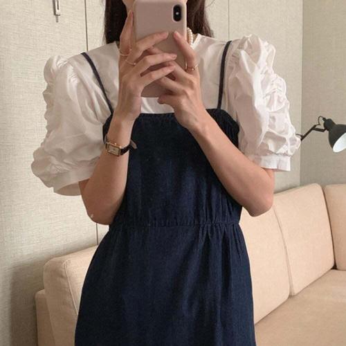[셀럽하우스]멜빵 WKIL1040 청치마 바캉스룩 여름원피스 러블리 미니멀 양포