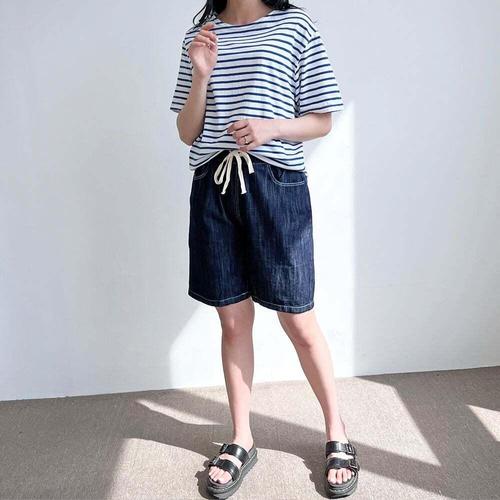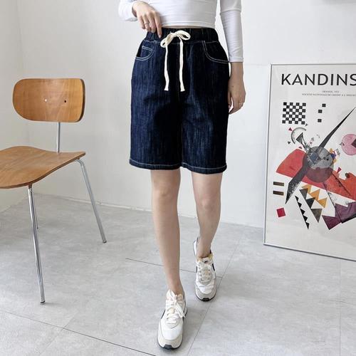 [셀럽하우스]하프 ETWL8245 5부 밴딩 진청 여자 편한 팬츠 데님 반바지