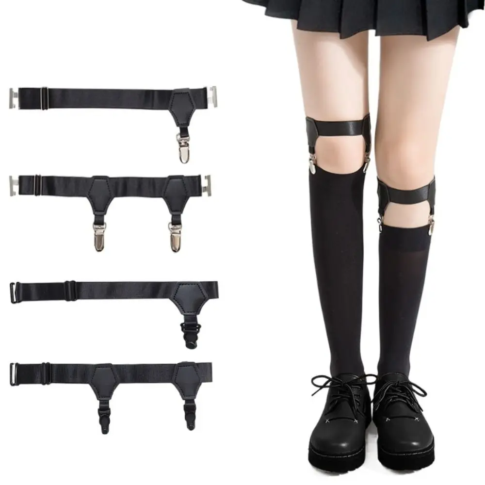 JK 일본 스타일 조절 가능한 탄성 미끄럼 방지 양말 가터 거치대, 여성용 블랙 양말 가터, 소녀 벨트 다리 멜빵, 1 쌍