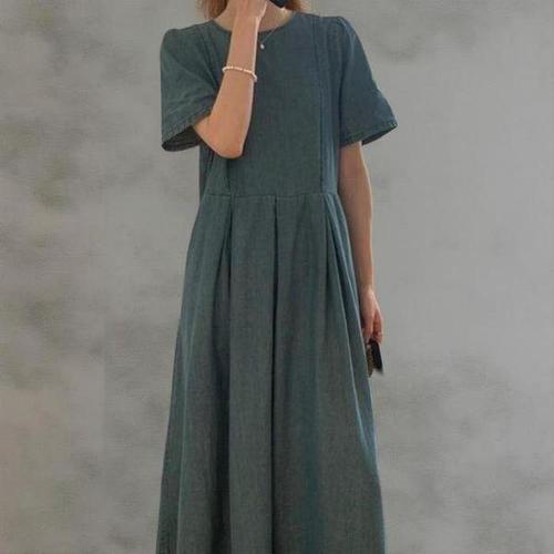 [삐까삐까]고급 여름 린넨 데님 반팔 롱 원피스 진청 생지 논페이드 비죠 허리 조절 청원피스