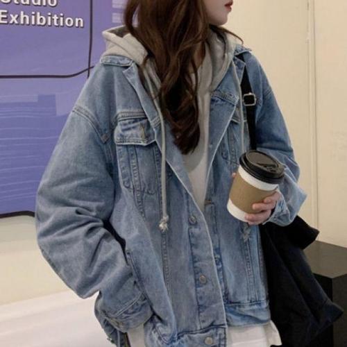 봄가을 가을 여성청 자켓 데님 봄 캐주얼 오버핏 청 여성 포켓