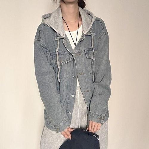 분리가능 재킷 청자켓 후드 오버핏 데님 아우터 여자 WFLQ8BQ