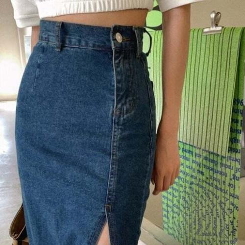 [셀럽하우스]청스커트 ASDV5070 스판 옆트임 치마 롱치마 미니 속바지포함