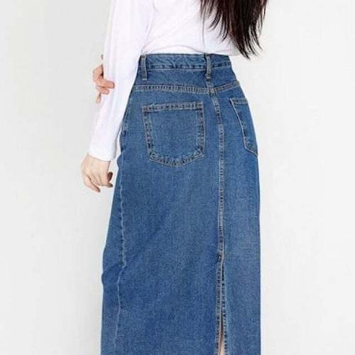 가비진 여성용 신축성 좋아 편안하고 핏 예쁜 뒤트임 스판 데님 롱 스커트 청치마