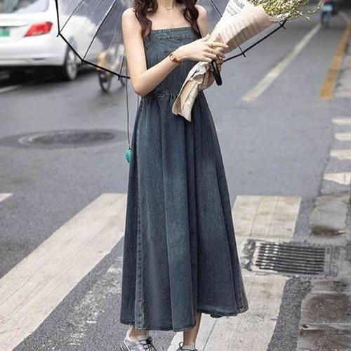 여름 데님 A라인 민소매 나시 롱 원피스 바캉스 청원피스 빅사이즈
